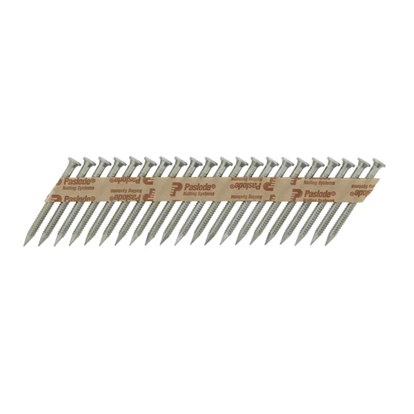 - Pour clous de 34° et de longueur 35 à 50 mm, assemblés en bande papier.